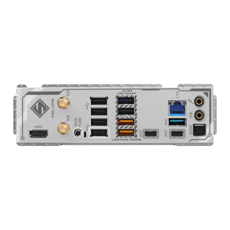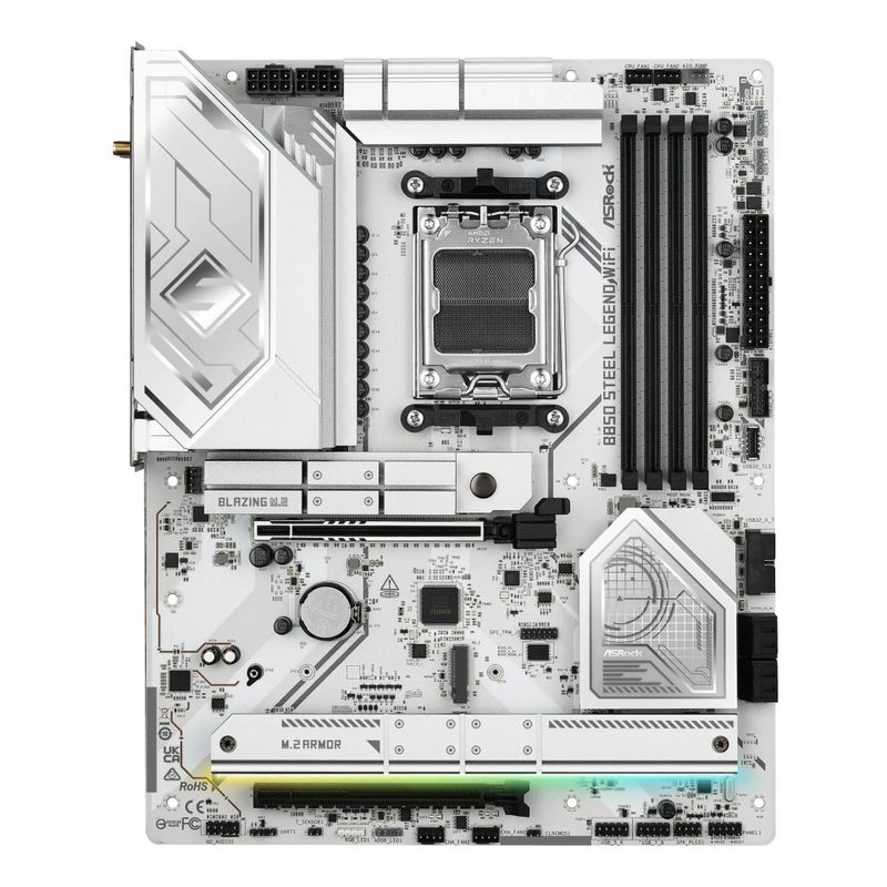The ASRock B850 STEEL LEGEND WIFI motherboard is designed for high-performance computing with a focus on versatility and connectivity. Built on the AMD B850 chipset, it supports Ryzen 7000, 8000, and 9000 Series processors, providing a robust architecture for gaming and productivity. With support for DDR5 SDRAM and four DIMM slots, this motherboard offers excellent memory performance for demanding applications. Equipped with advanced networking capabilities, including 2.5 Gigabit Ethernet and Wi-Fi 7 support, the B850 STEEL LEGEND WIFI ensures seamless connectivity whether wired or wireless. A variety of expansion slots including PCIe 5.0 x16, PCIe 4.0 x16, and multiple M.2 sockets provide flexible options for upgrades. The motherboard also features a high definition audio codec, ensuring an immersive sound experience for gamers and media enthusiasts alike.