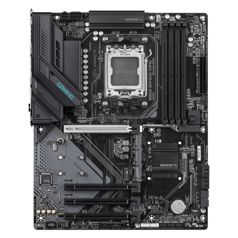 The GIGABYTE B850 GAMING WIFI6 motherboard offers performance and versatility for gamers and tech enthusiasts. Designed with the AMD B850 chipset and a Socket AM5 processor socket, it supports a range of Ryzen 7000/8000/9000 Series processors, ensuring compatibility and efficiency. With support for DDR5 SDRAM and overclocking capabilities up to 4100 MHz, it allows for multitasking and faster data processing, ideal for applications and gaming.