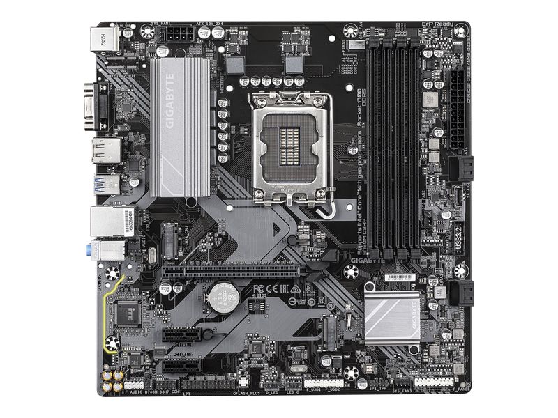 The GIGABYTE B760M D3HP motherboard is designed to provide a reliable foundation for building a high-performance computing system. Featuring an Intel B760 Express chipset and support for the new generation of Intel Core processors, this micro ATX motherboard ensures compatibility with both 12th and 13th Generation CPUs. With 4 DIMM slots supporting DDR5 SDRAM and speeds up to 2800 MHz, memory expansion is seamless and efficient for enhanced multitasking capabilities. The motherboard excels in connectivity options with multiple USB ports, including USB 3.2 Gen 1 and USB-C 3.2 Gen 1, alongside traditional PS/2 ports and high-definition audio outputs. Equipped with advanced hardware monitoring features, including temperature detection and fan speed management, it offers an easy way to maintain optimal performance during heavy workloads. The durable design ensures maximum reliability, while the innovative RGB FUSION adds aesthetic appeal, making the GIGABYTE B760M D3HP a choice for gamers and professionals alike.