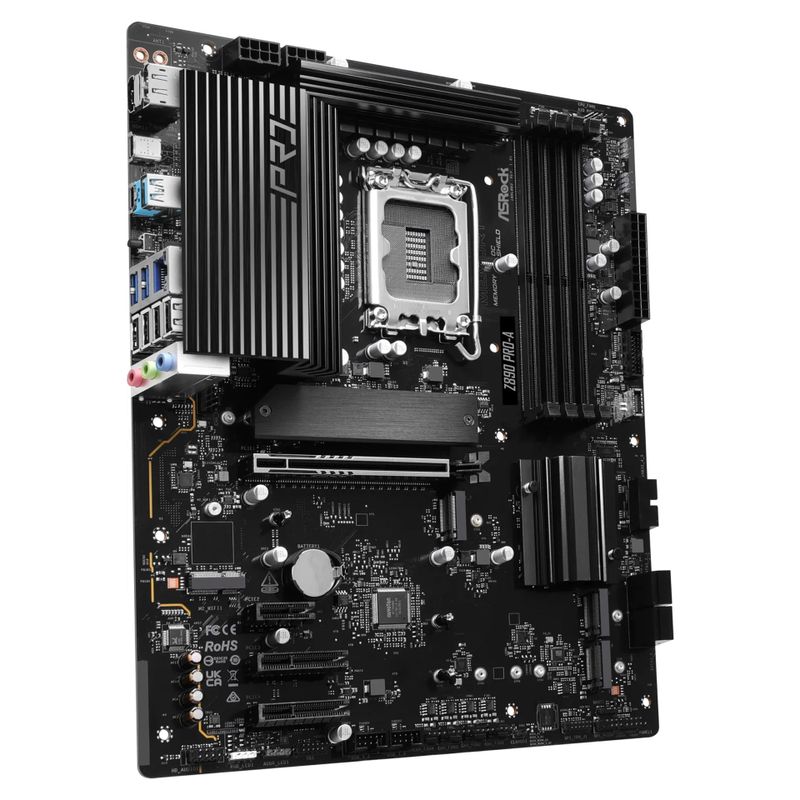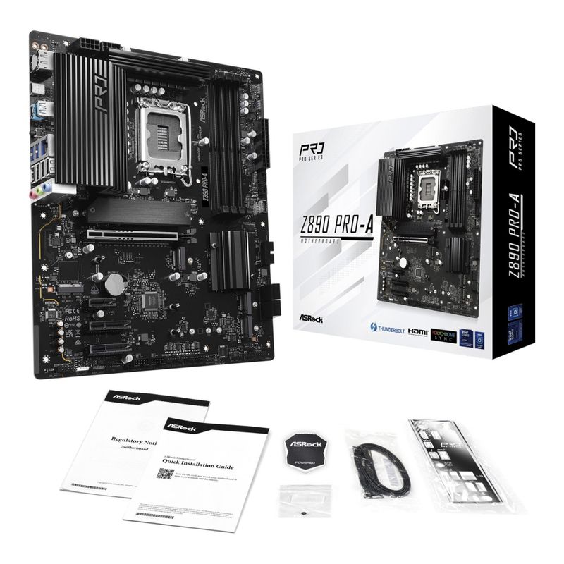 The ASRock Z890 Pro-A motherboard is designed for users seeking performance and versatility. Equipped with a powerful Intel Z890 chipset, it supports Intel Core Ultra processors, enabling a seamless computing experience. With four DIMM slots supporting DDR5 SDRAM at speeds up to 9066 MHz (O.C.), it accommodates high-capacity memory configurations for multitasking and demanding applications. The board features multiple expansion slots, including PCIe 5.0 and several M.2 slots, ensuring ample connectivity for modern storage solutions.