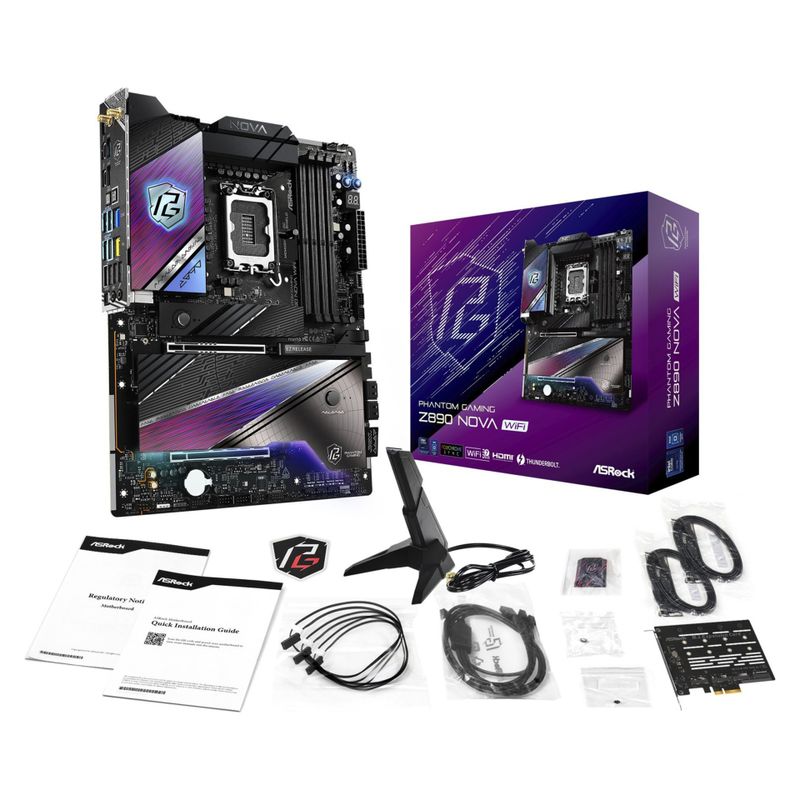 The ASRock Phantom Gaming Z890 NOVA WIFI motherboard is designed to meet the demands of modern gamers and power users. With support for Intel Core Ultra processors and a maximum RAM speed of 9600 MHz (overclocked), this motherboard offers performance and responsiveness. The 8-layer PCB design and Smart Power Stage technology ensure efficient power management, while the ASRock EZ Mode and Instant Flash features simplify BIOS navigation and updates. Gamers will appreciate the audio capabilities provided by the Realtek ALC4082 sound card, along with Nahimic Audio Enhancer for immersive sound quality.