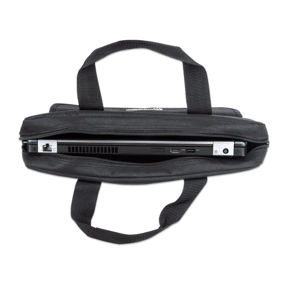 De Manhattan Notebook Bag is een praktische oplossing voor het beschermen van je notebook. Deze tas heeft een klassieke, slanke stijl, is licht en past overal – onder vliegtuigstoelen, in bagagevakken en grotere reiskoffers. Een ruim voorvak voor dossiers, kabels en accessoires, met een klittenbandsluiting voor de veiligheid. Met twee versterkte handvatten en een verstelbare, afneembare schouderriem.