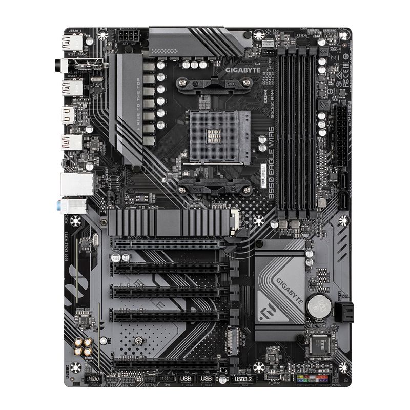 The GIGABYTE B550 EAGLE WIFI6 motherboard is designed to enhance your computing experience with its robust performance and advanced networking capabilities. Supporting AMD Ryzen processors, this motherboard utilizes the AMD B550 chipset and features an ATX form factor, making it a choice for custom builds. The motherboard includes four DIMM slots for DDR4 SDRAM, allowing for dual-channel memory architecture and speeds of up to 1600 MHz. With built-in support for both ECC and non-ECC memory modules, this motherboard meets a variety of needs.