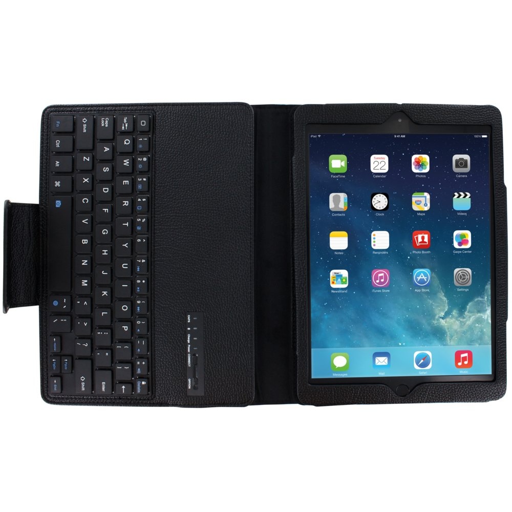 Met het Mobiparts Bluetooth Keyboard Case voor je iPad Air, Air 2, en Pro 9.7 kun je makkelijker typen en werken. Het is een handige opzet met een toetsenbord dat je productiviteit verhoogt. Dit stijlvolle zwarte toetsenbord is perfect voor zowel werk als ontspanning.