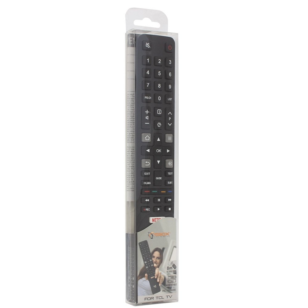 Met de SBOX RC-01406 afstandsbediening maakt u het bedienen van uw TCL TV eenvoudig en plezierig. Deze handige afstandsbediening is speciaal ontworpen voor TCL televisies, zodat u moeiteloos kunt schakelen tussen zenders en instellingen kunt aanpassen.